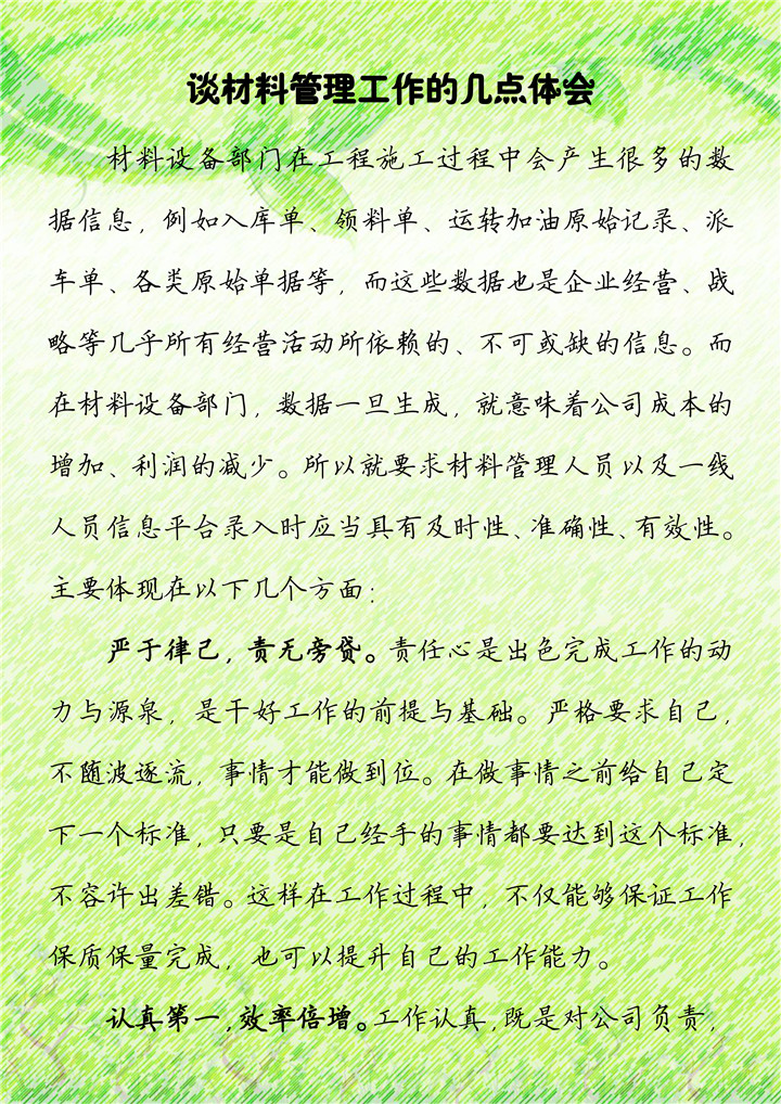 谈材料管理工作的几点体会