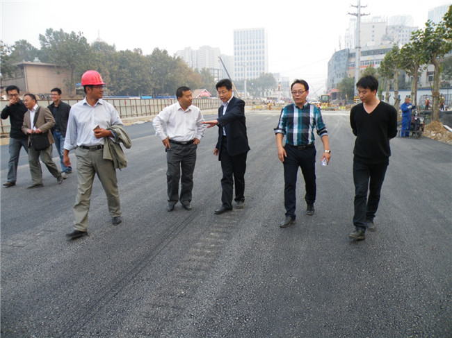 10月20日下午,济南市市政公用事业局副局长修春海来到济南市市政工程有限公司纬十二路道路改造工程现场, 详细了解工程进度并察看现场施工情况。修春海对现场的安全文明施工等工作表示肯定,并要求各部门要在保证施工质量和安全的基础上,大力推进项目建设进度,确保按期完成施工任务。