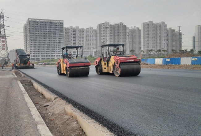 近日,对K0+425-0+875段进行了快、慢车道沥青面层及人行道水稳基层施工。针对沥青面层施工,项目部科学组织、精心安排,利用施工前会议、作业人员交底、原材质量检验、混合料运输、摊铺、过程问题立即处理等措施确保施工质量。通过试验段确定工艺参数,快卸、快铺、快平,及时碾压成型,遵循“先轻后重、先静后振、先低后高、先慢后快、轮迹重叠”的原则,摊铺厚度、压实度及平整度满足规范及设计要求。施工完成后封闭交通,做好成品保护工作。